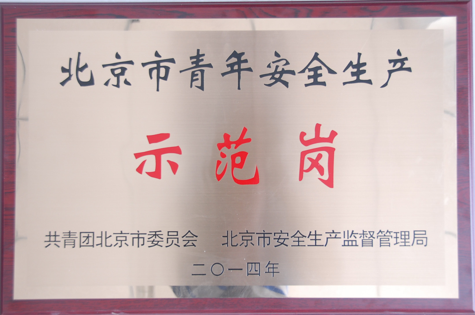 4月29日,北京团市委和市安监局联合召开会议,对2014年度北京市青年安全生产示范岗创建工作进行表彰,公司低温二处框架组装班荣获“北京市青年安全生产示范岗”称号。